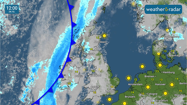 Cloud and rain will advance from the west into Ireland and Northern Ireland through the day, accompanied by brisk winds.