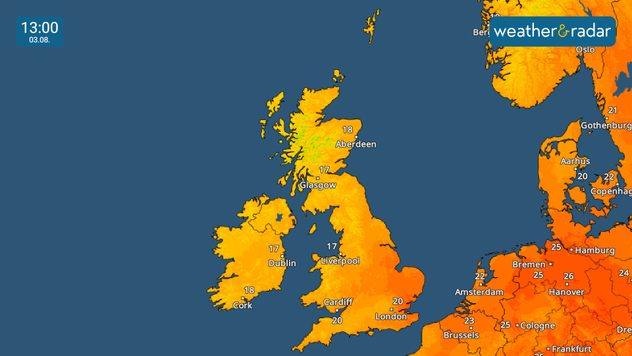 Clouding over from the west into Sunday, with outbreaks of patchy light rain drifting eastwards. Rain then looks to intensify across Ireland in the afternoon, reaching Scotland through the evening.
