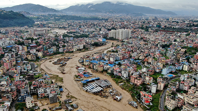 The Bagmati River in Kathmandu has burst its banks following rainfall. - © picture alliance
