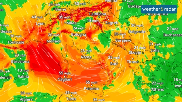 Gusts exceeding 60 mph – Stormy weather in the Mediterranean