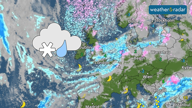 WeatherRadar: Numerous rain and snow showers are moving across northern and western Europe.