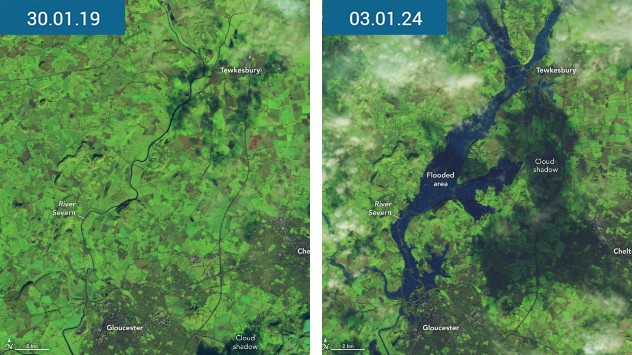 The full scope of flooding in the UK this week has been displayed by new satellite images showing severe floods along the River Severn.