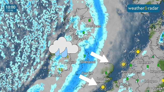 While a brolly will be needed Wednesday morning, it is in the evening that a larger area of rain arrives. For Ireland, this is concentrated mostly in the east as it moves into the UK.