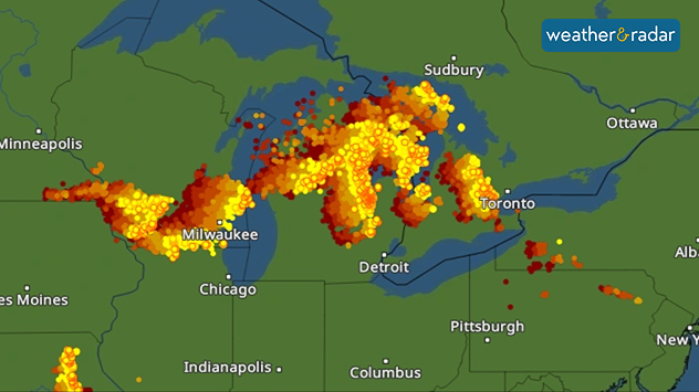 The thunderstorm season has taken off in the US. A massive thunderstorm front is currently sweeping across the north. Thousands of lightning strikes have already been recorded in the Great Lakes region.