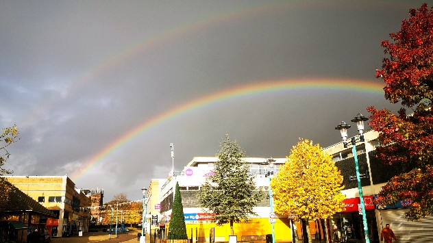 Twin rainbows lit the skies over Higham, Lancashire. - © Pat Hickey