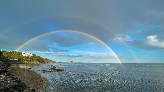 Shelf cloudDouble rainbow over seaWeather front approachingSunset cloudsStorm clouds