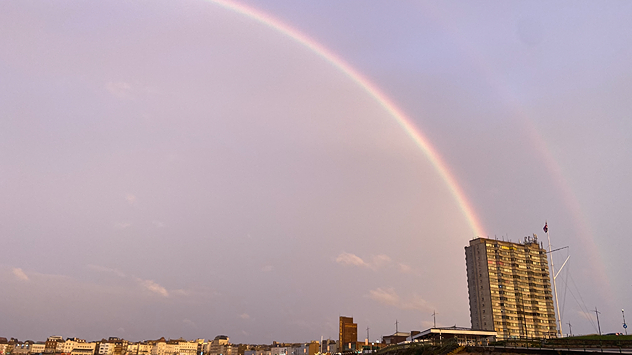 Rainbows and stormy skies above