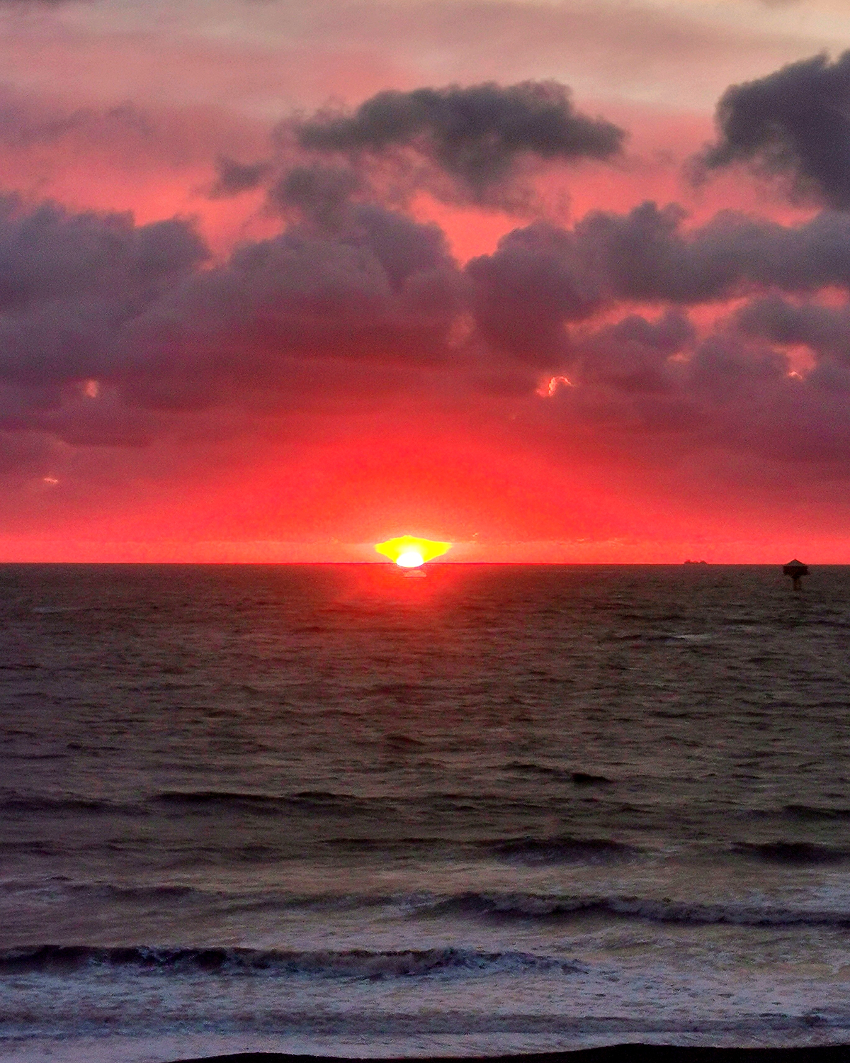 A fiery red sunrise captured from Lowestoft, Suffolk. - © Elaine High